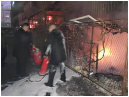 2020年1月28日晚20點50分,沈陽廣播電視臺北院家屬樓南側1單元飯店突發(fā)火情,家屬樓值班人員第一時間發(fā)現情況及時與我處門衛(wèi)聯系尋求幫助,門衛(wèi)保安隊員在了解情況后馬上聯系值班班長孫永升,孫永升出于職業(yè)的敏感性,馬上啟動緊急預案,向監(jiān)控中心及隊長進行報告后,帶領保安隊員及消防設備一同趕赴火災現場。